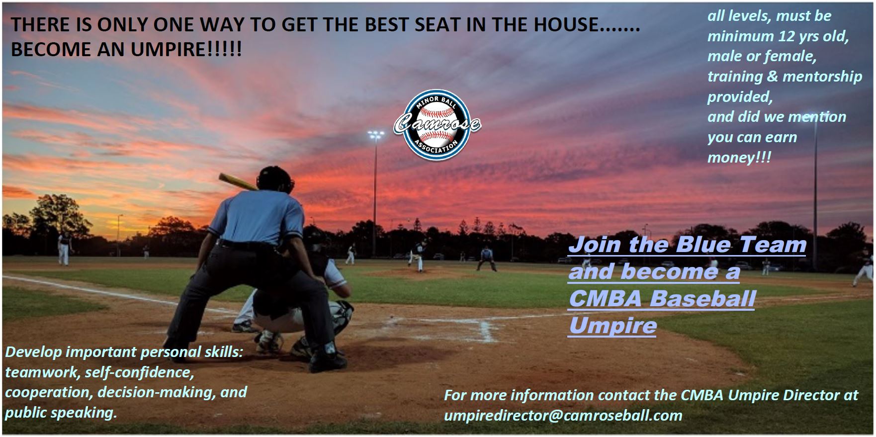 If you have any questions please direct them to umpiredirector@camroseball.com.